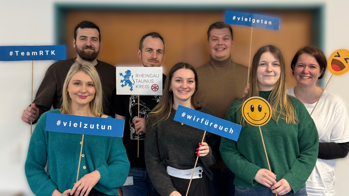 Das Motto der Kreisverwaltung im Rheingau-Taunus-Kreis lautet: „Wir für Euch!“. Dieses Motto ist eine der ersten Sachen, die neue Auszubildende und Dual Studierende im Kreishaus in Bad Schwalbach lernen. Dieses Selbstverständnis - als Dienstleister für die Menschen im Landkreis - ist die Grundlage für die Arbeit in den vielfältigen Fachbereichen und Stabsstellen des RTK. Das Ziel: Bürgerinnen und Bürgern bei ihren Belangen, der Daseinsvorsorge oder Fragen zu helfen und so die Gesellschaft stärken.