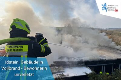 Um 5 Uhr wurde der Leitstelle über Notruf ein Wohnungsbrand am Ortsrand von Idstein gemeldet. Bei Ankunft der ersten Einsatzkräfte stand bereits ein Anbau in Flammen. Aus dem kompletten Dach des einstöckigen Hauses drang dichter Qualm.